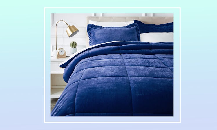 What's great about it: Constructed with fluffy down alternative, this affordable bed comforter is as warm and cozy as it gets. The two-sided blanket, which has more than 700 reviews, features silky, micro-mink polyester on one side and soft, faux sherpa fleece on the other. The box-stitching helps keep the filling evenly distributed. Best of all, it's machine-washable and comes with two pillow shams.