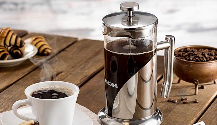 What's great about it: This FINEDINE French press looks and feels fancy, but it's actually pretty simple to use. You'll need to heat up water separately in a kettle or pot, but once the water is hot enough, your grounds only need to steep for about four minutes. This French press utilizes a stainless steel mesh filter that's easy to use, though some reviewers found it a little more work to clean. The glass canister, on the other hand, can be removed entirely from its metal frame and put in the dishwasher. This is one of the quickest options on this list, though it may not be the right choice if you're worried about your cholesterol levels, as some studies show that coffee made in a French press may contribute to a rise in LDL levels.