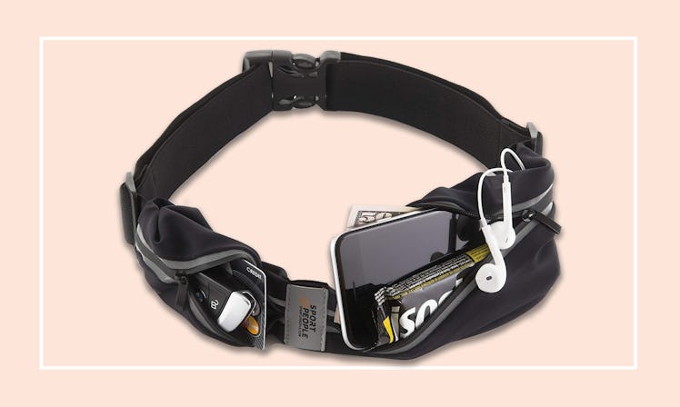 What's great about it: This lightweight running belt is another fantastic option that also has tons of positive reviews on Amazon (almost 3,000, if you're counting). It's slightly cheaper than the FlipBelt and features water-resistant fabric that's great for rainy runs, as well as managing sweat. Like the FlipBelt, it's reflective for night training. But this one boasts unique earbud holes and an extra pocket (meaning you can keep your phone separated from other items). It fits waists ranging from 27.5 to 40.5 inches.