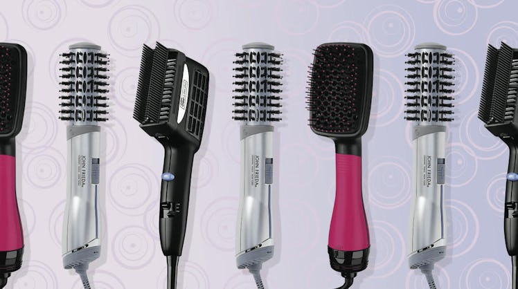 One of the reasons why I so rarely blow out my own hair is because of the physical gymnastics it requires. I've yet to figure out the proper angle to hold my brush and blow dryer so that I can achieve the same gorgeous, bouncy locks with which my hairdresser always leaves me. Turns out that there's a solution: investing in one of the best blow-dry brushes. These clever hot tools combine the function of a brush with the heat of a blow dryer so that you can easily style your damp hair — sometimes even one-handed. While they all feature ionic technology and adjustable heat settings, which model you choose will depend on what kind of hair style you want to achieve.