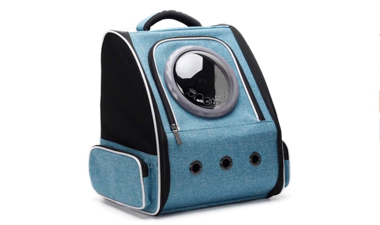 This sturdy cat backpack holds kitties up to 25 pounds and is a great way to comfortably carry heavier cats. The waterproof backpack comes with two front window options: a bubble cover that gives your cat a view of the outside world (and makes them look like a cute kitty astronaut), or a flat honeycomb cover that provides more airflow. Ventilation is also provided with mesh panels on each side and air holes on the front. You can place your cat inside by unzipping the front or side panels, and in the interior, there’s a removable and hand-washable pad, as well as a safety clip for harnesses. The adjustable shoulder straps are padded for comfort, and there’s a chest buckle for extra support. Plus, you can store treats and other essentials in the convenient side pockets.