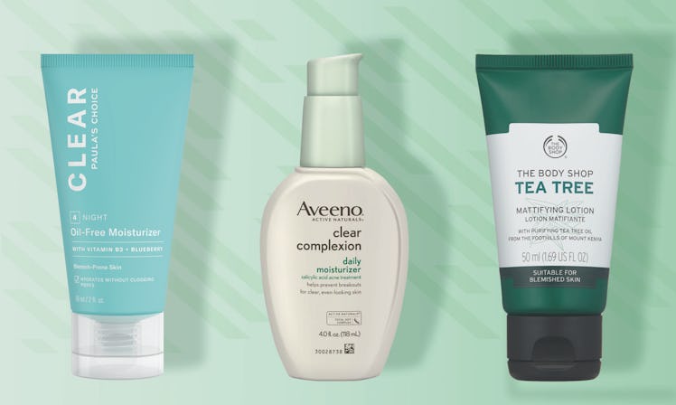You'll first want to look for a moisturizer that says it's oil-free, since obviously, adding heavy oils to skin that has a tendency to break out isn't going to do you much good. You might also prefer to use a face moisturizer that contains an acne-fighting ingredient like salicylic acid. Used on its own or in conjunction with another acne treatment, a moisturizer with salicylic acid can help keep skin clear — just be sure to check with your derm first to make sure it plays nicely with any treatments you might already be prescribed.