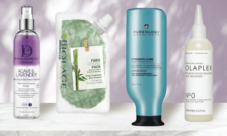 St. Jean calls this magic duo, or “The best of the best in reparative treatments for your hair." (In general, Olaplex products tend to be the go-to among professionals for repairing hair damage.) First, soak your hair with the No.0 Intensive Bond Building Treatment, then, after about 10 minutes, apply a generous amount of the Hair Perfector No 3 Repairing Treatment and wait another 10 minutes. After that, you can shampoo and condition your hair like you normally would. "When you use the two in combination, you can see a huge difference in not only the repair of previously damaged hair, but your hair will actually be stronger going forward," St. John says.