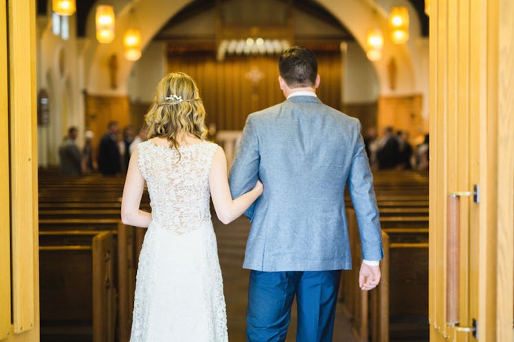 Weddings are expensive, y'all. Between the cost of the dress, caterer, drinks, decorations, flowers, photographer, invitations, venue, and more, everything can add up fast. It's enough to make anyone want to call it a day and say "I do" on a playground if they have to. But if you and your partner are religious, and you've considered tying the knot somewhere meaningful to your faith, the cost of a church wedding can be refreshingly attainable. In fact, it might just make you reconsider that expensive, rustic barn venue you've been eyeing.