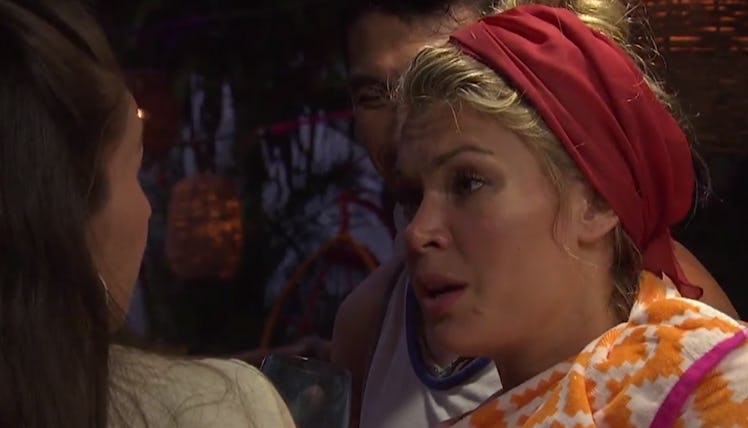 Of course, explosive drama is due to overshadow any budding romances on Paradise. I would like Grocery Store Joe imitating an explosion as an ever-looping GIF now, please. Also, she may not drop a glitter bomb this year, but Season 22 "villain" Krystal Nielson is back, telling others, "I do what I want," with a snap to emphasize her point. Although he may have a date or two, Jordan is also causing trouble, seemingly inspiring sweet, low-key Kendall Long to say that she'd call the cops. Since we no longer have a single Ashley I. to be Paradise's token crying girl, Bachelor and Winter Games star Bibiana Julian appears to have taken her place, finishing the promo with her tears and the insistence that she's having fun.