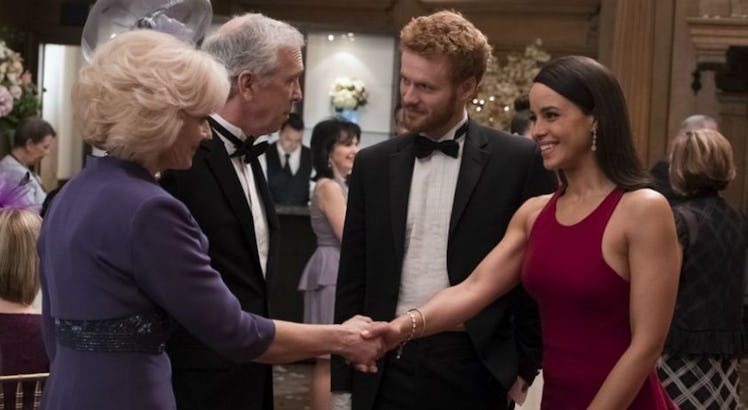 In the Meghan category, the casting has improved. Not that Fitz-Henley was terrible in the role, but she doesn't look much like Meghan, as one can see in the above set of pictures. The middle image is Fitz-Henley from the first Harry & Meghan film, while the left is the real-deal Meghan. Smith, on the other hand, on the far right, has much more of the facial structure to pull off Markle's look. A small bit of makeup should be able to get the sequel a far better Meghan stand-in.