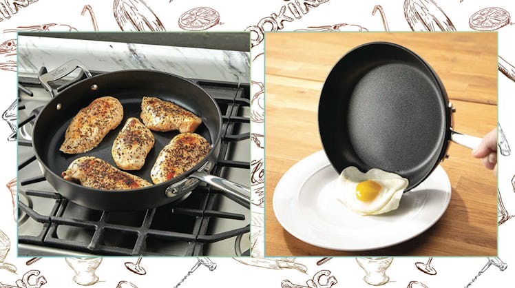 Tri-ply construction means the stainless steel layers of All-Clad’s most popular pots and pans are sandwiched around a core of either aluminum or copper for superior heat conduction; if precision is essential, consider springing for the brand's top-of-the-line Copper Core line, designed with patented 5-ply bonded construction for the best heat responsiveness. All-Clad's D3 Stainless collection is considered its most popular offering because it's more affordably priced, delivers even heat distribution, and is compatible with all cooktops, including induction. That said, another affordable entry point is their Essentials Nonstick Collection, a newer non-stick line with a PFOA-free coating over anodized aluminum. The good news is that All-Clad cookware is dishwasher-safe.
