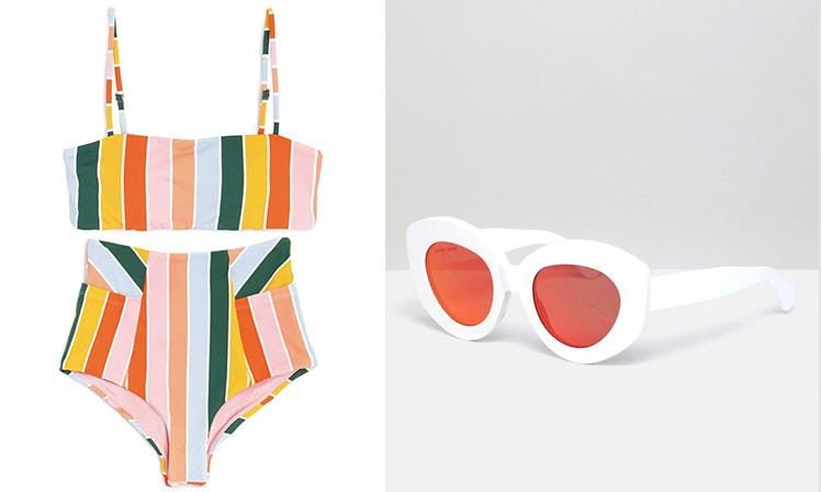 I'm obsessed with this Color Wheel High Waist Bikini Bottom ($99, Bando) and Bandeau Bikini Top ($79, Bando) because of it's cheery color palette, fun cut, and convenient pockets. Now all you need are these House Of Holland Oversized Mirrored Cat Eye Sunglasses ($99, ASOS).