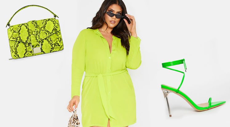 In the same vein, the Plus Neon Lime Tie Waist Shirt Dress ($45, prettylittlething.us) is not to be ignored. A more covered-up fit will balance out the bold hue, and this look would be as good at the club as it would be for a happy hour with your coworkers. Nothing beats a dress I can wear literally anywhere, you know?