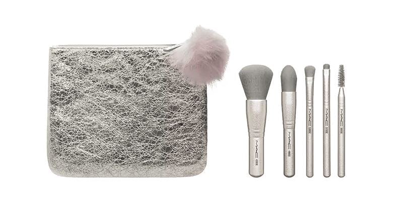 We're in love with this chic Snow Ball Face Bag, which is currently sold online for $49.50. You'll find Extra Dimension Skinfinish in Whisper of Gilt and a beautiful rose gold-handled 140 Synthetic Full Fan Brush in the kit.