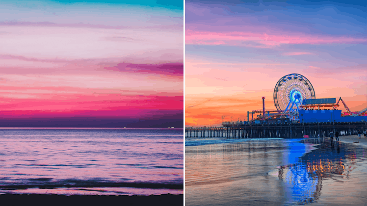 As the sun goes down, the neon lights begin to shine. Finding a colorful setting like the pier is a great place to showcase the juxtaposition of the day ending, the and night beginning. In fact, the Santa Monica Pier is a perfect location to add to your sunset bucket list. You'll see the Ferris wheel start to light up with bright colors just as the sky turns purple in the background.