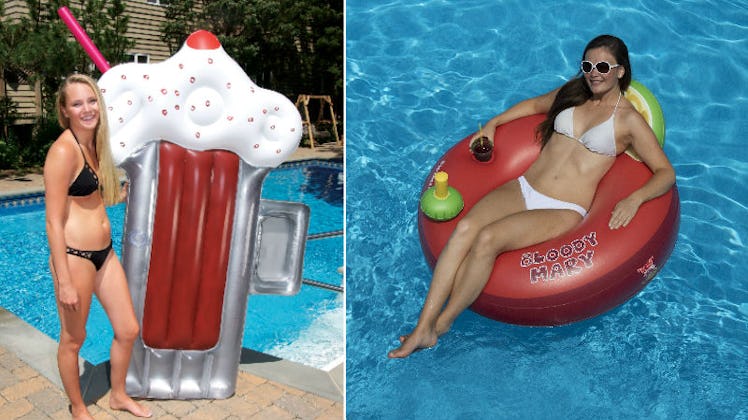 Maybe if we say "Blood Mary" three times, this float will magically appear in our lives. That would be a summer miracle. Instead of going out for brunch with your friends, invite them over for Bloody Marys in the pool while you chill in your drink tubes.
