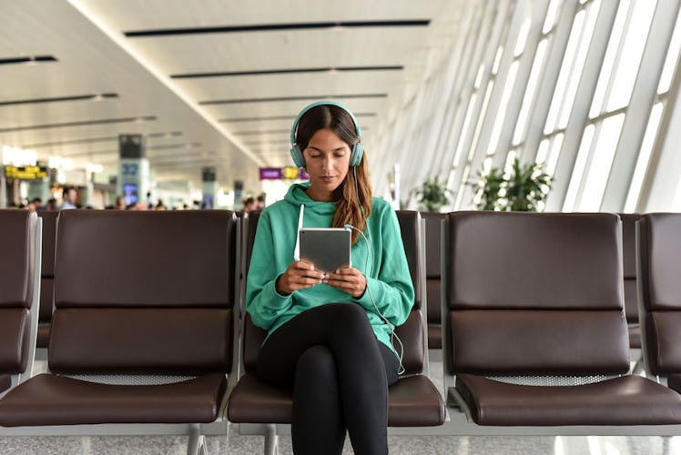 This is my absolute favorite pair of headphones to travel with. It has a solid battery life, and can also transition from wireless to wired, so you can wear them comfortably before the flight, and then plug into your plane's entertainment system if you want to watch a movie. It doesn't hurt that they look super cute, too.