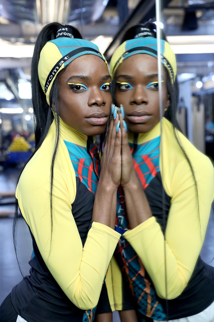 Up your eyeshadow game by combining two opposing shades in one eye look for some cool color-blocking, as seen at Chromat, Margiela, and more. To pull it off, try first with complementary colors and apply them on your eyelid right next to each other — without blending them together — for an immediately striking look. If you're feeling brave, neon shadows were a designer favorite this season, but this vibrant look works with all sorts of color combos.
