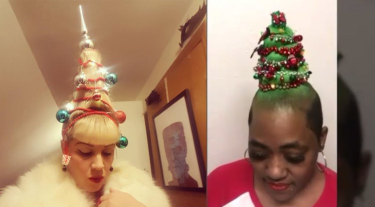 Prior to seeing this trend, I might've deemed a festive red bow or a spritz of glitter hair spray as "festive" as holiday hair could get, and boy, was I wrong. Many stylists and hair enthusists much more creative than I have managed to craft literal Christmas trees using only their strands and some baubles for decor, and I'm fascinated, envious, and totally impressed. The hashtag "#christmastreehair" currently boasts 2,388 posts on Instagram, and as December rolls around, I have a feeling that number is about to climb even higher.