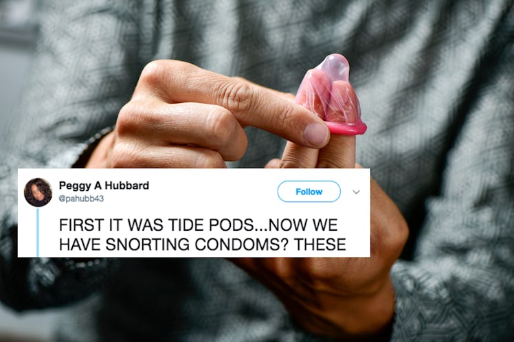 Yes, despite what your heart may desperately want to believe, you really did read that correctly. People have literally started taking part in a "condom snorting challenge." When I first read the title, I hoped that maybe it was one of those things that sounds nothing like what it actually is. Kind of like ghosting has nothing to do with actual ghosts. But unfortunately, condom snorting is pretty much exactly what the name describes it as. USA Today explains that teenagers across the country are putting unwrapped condoms up one nostril and snorting it upward until it comes out of their mouth. Oh, and to make matters worse, they're filming the entire thing and posting the completed video on social media.