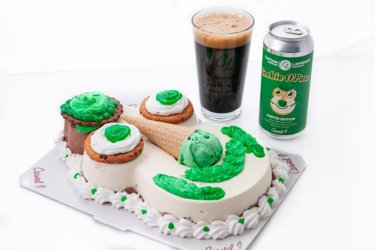 Every St. Patrick's Day, I usually find myself sitting around the bar at the local pub with all of my friends. However, this year might be a little bit different — because the Cookie O'Puss Pastry Stout by Carvel and Captain Lawrence Brewing is on its way. That's right: The new ice cream cake-inspired beer will be hitting the shelves in time for St. Patty's Day, which means I'll probably be hanging out at home on March 17 with a can in my hand. If you're a fan of dessert and beer (which, c'mon, why wouldn't you be?), then you're probably just as excited as I am. Just wait until you read more details about the limited-edition brew.