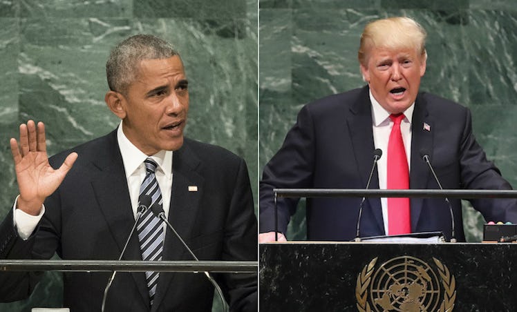 On Wednesday, Sept. 26, President Donald Trump took the stage at the United Nations in New York City to kick off the meeting of the UN Security Council at the UN General Assembly. And while it was Trump's first time chairing the meeting, he had some big shoes to fill, given that his predecssor, Barack Obama, got to chair the meeting twice during his two-term presidency. So, for those searching for a side by side comparison of Trump versus Obama on the UN Security Council, here you go.