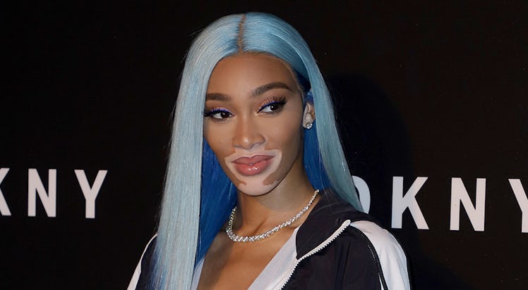 Winnie Harlow was just spotted rocking an icy blue wig styled into straight, middle-parted strands at a DKNY party during New York Fashion Week, and let me tell you, it's a big mood: