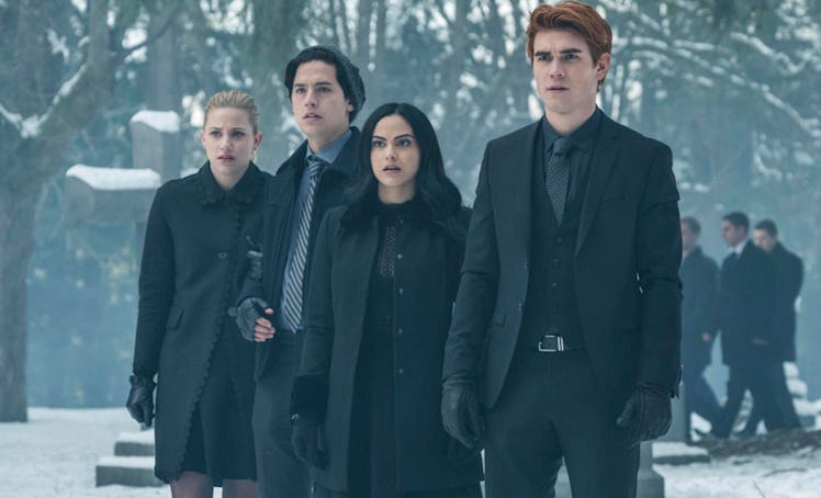 Along with providing some closure for Fred Andrews and honoring Luke Perry, the new season also has a ton of storylines to continue after the cliffhanger-filled Season 3 finale. Spoiler alert: The rest of this post contains spoilers from the Riverdale Season 3 finale. While Archie did not really get much of a twist ending in Season 3, all of the other main characters did. Veronica was shocked to watch her mother being arrested, while her father implied a revenge plan on his daughter from behind bars, and Cheryl took an extremely creepy turn by taking her twin brother's corpse home with her and talking to it.
