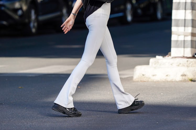 It's time to bring back all those repressed middle school fashion memories. While tracksuits, scrunchies, butterfly clips, and more have come back into style, this recent resurgence may shock you for a moment. The latest TikTok fashion trend is: yoga pants... or flared leggings. As Gen Z reclaims the early '00s style, I have a lot of questions. The main one is why? But the debate taking over Twitter and TikTok, however, is "flared leggings" vs. "yoga pants" — yes, simply about the terminology. And it's getting heated.