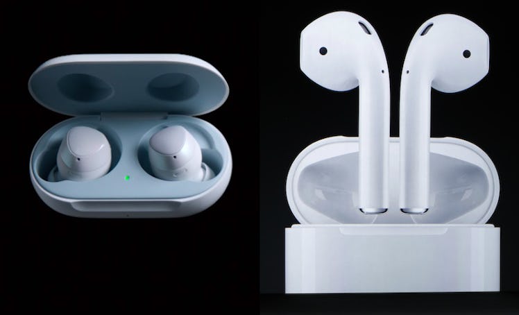 You may have heard that popular electronics company Samsung recently introduced a spankin' new line of goodies on Wednesday, Feb. 20, which includes a new wearable known as the Galaxy Buds. These incredibly advanced wireless earbuds are set to debut nationwide as of March 8, according to Samsung — and they set themselves apart from Apple's Airpods in a few key ways. First off, you'll notice a difference in the prices of the devices.