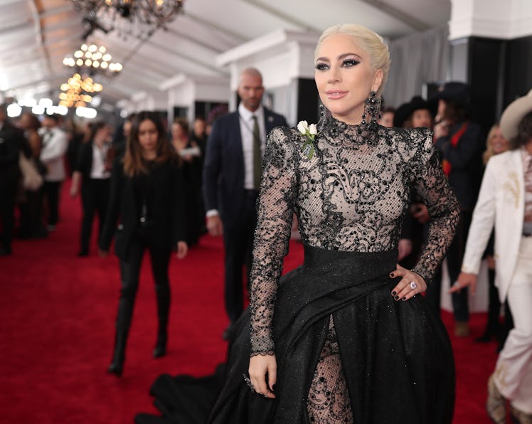 At the 2018 Grammys, Lady Gaga is amongst the many celebrities wearing a white rose: