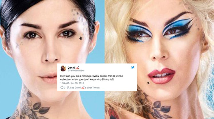 Fresh off her Basket Case Anti-Precision Eyeliner collaboration with Billie Joe Armstrong, Kat von D has created another collection inspired by a less mainstream icon (one I personally love and adore), and people are... confused, to say the least. The Kat von D x Divine makeup just dropped, right in time for Valentine's Day, but makeup lovers everywhere are having a time with the launch. Of course, some drag aficionados are rejoicing and basically throwing fistfuls of cash at their computer screens. Others feel that the collection didn't capture Divine's one-of-a-kind essence. Some don't even know who Divine is.
