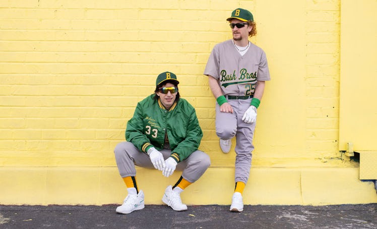 Fans had so many guesses about what the Lonely Island's mystery project could be, ranging from a surprise concert documentary to a new comedy film, but it turned out that the group was indeed mirroring the most iconic surprise release in music history — Beyoncé's Lemonade — for a reason. The new 30-minute special is a string of music videos for a brand new comedy rap album, which is also entitled The Unauthorized Bash Brothers Experience. The release is named after Jose Canseco and Mark McGwire, two Oakland A's baseball players who became known as the Bash Brothers in the 1980s for setting records in how many home runs they hit. They also became famous for their rampant use of steroids.