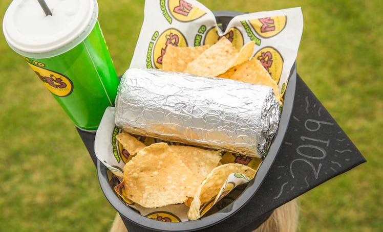 Before you head to Moe's and start collecting accessories for your graduation cap, there's one more thing that you should know. In order to enter the contest, you'll have to be a member of the "Moe Rewards" program, which features perks like birthday burritos and free queso when you register. Thankfully, signing up is totally free — so make sure you're registered before entering the company's graduation cap contest.