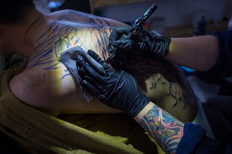 So what can you do if you're dying to get some new ink, but you're terrified of the pain? Jeiven says you can always opt for a numbing agent. But she also notes that you should let the tattoo artist apply it, as most over-the-counter solutions aren't as effective as professional-grade products, and they often don't work on unbroken skin. Rosa adds that since many numbing agents have vasoconstrictors, which constrict blood vessels, the skin can become rubbery. So it's important to go to an experienced artist who knows how to tattoo once the skin texture has changed. But while this option exists, some artists recommend ditching the numbing creams all together and just toughing it out.