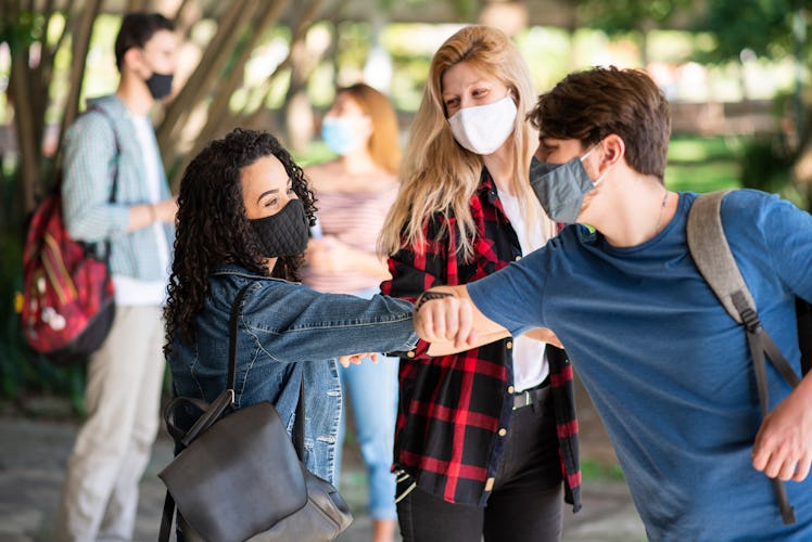 To avoid confusion, the CDC points out that people are only considered fully vaccinated two or more weeks after they've received the final dose of the vaccine. So, you'll have to wait at least two weeks after getting a single-dose vaccine, or two weeks after getting the second dose of a two-dose treatment, to catch up on any socializing. And even then, the CDC recommends limiting gatherings among vaccinated people to small, private settings, "while being mindful of the potential risk of transmitting the virus to others." Because experts still don't fully understand how vaccinated people can still inadvertently transmit the virus, experts still strongly recommend that everyone continue to wear masks and social distance in public spaces.