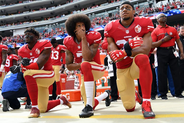 When former San Francisco 49ers quarterback Colin Kaepernick began kneeling to protest police brutality in 2016, the National Football League (NFL) had no rule against it; the policy encouraged players to stand, but did not include language to punish those who did not. In the next season, starting in 2017, dozens of other players followed Kaepernick's lead. In the wake of controversy lobbed at the NFL for what has been labeled by President Donald Trump, among others, as "disrespect for the American flag," the league updated its policy on Wednesday, May 23. The NFL announced the update at a press conference that requires players to stand for the national anthem — a controversial move that is viewed by some as suppressing free speech. The NFL's new policy on kneeling during the national anthem raises a few big questions.