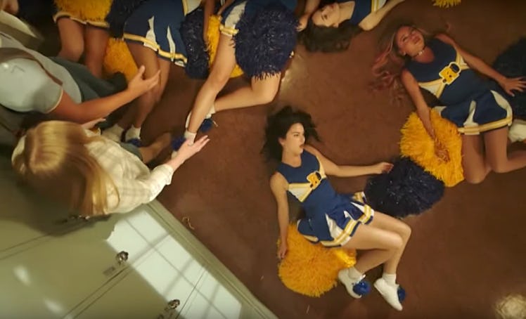 One of the most confounding mysteries at the center of Riverdale Season 3 has been the onslaught of seizures that seem to randomly take down some of the important characters. At the very beginning of Season 3, Betty suffered a seizure after witnessing Alice and Polly seemingly making Polly's babies float at a meeting with their cult The Farm. Later, Ethel suddenly began seizing while she was speaking to Betty and Jughead about the Gargoyle King, and most recently, Josie had a seizure in class when Sheriff Minetta questioned her about playing Gryphons and Gargoyles. The seizures are about to go to the next level, though, as the new Episode 8 teaser shows all of the River Vixens — including Veronica and Toni — experiencing a mass seizure in the school hallway.
