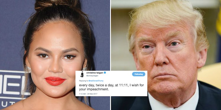 Teigen replied, "Every day, twice a day, at 11:11, I wish for your impeachment."