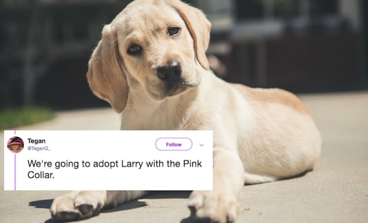 Grab some tissues, guys, because reading the following story might make you cry. If you'd rather have a quick summary before diving in, though, I'll give you one. On Tuesday, April 9, a kind soul named Tegan Griffith found an abandoned puppy on the side of the road on her way to work in Wisconsin. Naturally, she pulled over and rescued him. After bringing the rescued pup to her local animal shelter, Griffith adopted him and named him Larry. She ended up sharing her adoption story on Twitter, and all of the tweets about an abandoned puppy in Wisconsin share the love in a big way. Some people are showing gratitude, while others are sharing their own adorable adoption stories. Like I said, grab those tissues, y'all.