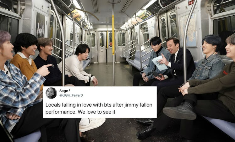 Ever since BTS and Jimmy Fallon developed an adorable bromance on the Tonight Show in September 2018, fans have been waiting for them to reunite again. Fans' wishes finally came true on Monday, Feb. 24. Before the special episode aired, Fallon told the BTS ARMY it would be an episode like never before, and these tweets about BTS' Tonight Show subway special show he wasn't wrong.