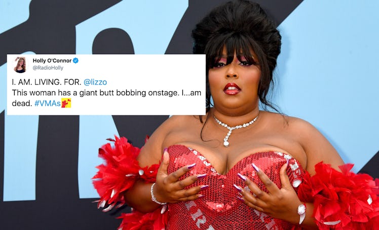 Even before the 2019 MTV Video Music Awards began, every music fan knew Lizzo's performance would most definitely be the biggest and most exciting mini-concert of the night. And of course, she totally did not disappoint. These tweets about Lizzo's MTV VMAs performance prove that the hit-making superstar completely stole the show with her vocals... and a big floating butt.