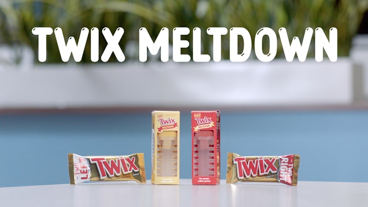 If you aren't already familiar with the Twix Meltdown, it's a device that lets you combine your coffee and Twix bar in the most conducive way possible. Per the April 16 release, you place a Left or Right Twix into a cup of hot coffee. The hot coffee absorbs each and every drop of chocolate and caramel, letting you pull out just the cookie to eat all on its own. It's pretty ingenious, and it's definitely going to make each and every one of my early mornings a lot more tolerable. If you still aren't totally clear on how to use it, though, make sure to check out the steps in the photos below.