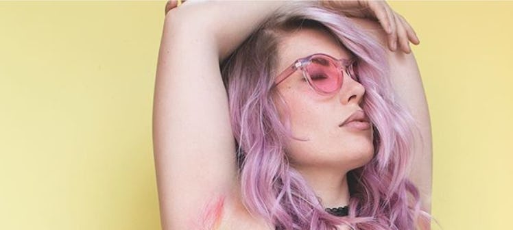 Whereas gender norms for so long judged women with armpit hair as taboo, society has fortunately begun to embrace this very natural phenomenon, with celebs like Miley Cyrus and Jemima Kirke putting their body hair on full display on the regular. Even model Gigi Hadid showed off some underarm hair for Love Magazine's 2017 Advent Calendar, so we've really said thank u, next to any judgemental thinking here. According to Marie Claire, It seems Official Rainbow Girl on Youtube, who currently has 279K followers and creates rainbow-specific style content and more, began the colorful armpit-dying trend way back in 2016, when she uploaded a video about dying her armpits in shades of the rainbow. She's also done videos on how to dye your beard, the hair on your head, and pretty much everywhere else rainbow, too.