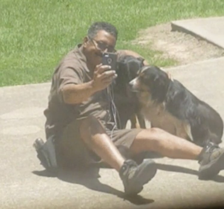 Seriously, these drivers look like they're besties with all the doggos. They treat the pups like good friends, too. There's many pictures of drivers doling out treats for their furry friends along their routes, and a lot of the pups know they're coming, so they adorably run right up to the UPS truck when it arrives.