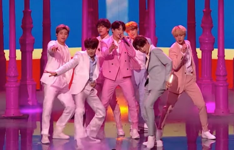 Another day, another timezone for the BTS ARMY to keep track of. As a New York City-based ARMY, back in April, when the boys were in Korea promoting their new single "Boy With Luv" on the Korean music show circuit, I found myself waking up at 4 a.m. on a daily basis to catch the boys' latest performance live because of the 13-hours-ahead time difference. Then they hopped a flight to LA in May to start their Speak Yourself world tour and they were all the sudden only three-hours behind me. But now, the boys are in England, where it's five hours ahead — which means all their performances are now going down smack-dab in the middle of my workday. Like I said: Just another day in the life of an ARMY. But this video of BTS' Britain's Got Talent performance of "Boy With Luv" made all the time-zone angst worth it.