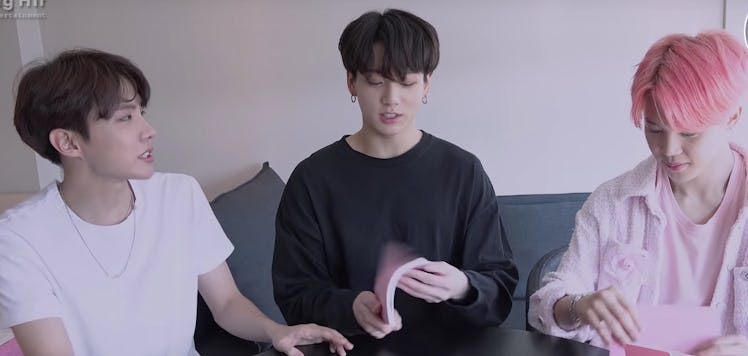 If you do want to know what Jimin, Junkook, and J-Hope are saying to each other throughout the process, I have good news. Twitter account @cafe_army provides Korean-English translations for BTS content, and it highlighted various parts of the 17-minute unboxing video that demand translation. For example, there's a moment in the video where the boys are looking through the photo book and see a picture of V who they proceed to call, per the account's translation from Korean to Englush, "really good looking" and "most handsome man." There's honestly nothing cuter than BTS members gassing up their bandmates.