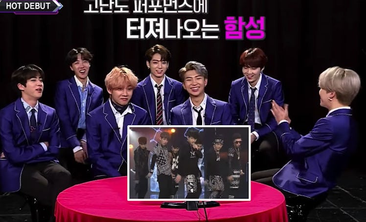 It's hard to remember a time when BTS wasn't the biggest thing happening in the music world. For many fans like me, we were first introduced to the K-pop sensation well into their über successful, international reign. I've only known them as the incredibly synchronized, unbelievably charming, wildly talented, grown-up group they are today, so seeing the video of BTS reacting to their M Countdown debut performance from all the way back in 2013 is a real treat.
