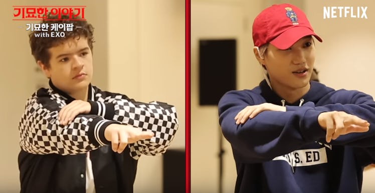 While they were in South Korea doing promotions for Stranger Things, Gaten Matarazzo and Caleb McLaughlin met up with EXO's Kai and Suho at SM Entertainment's headquarters, which could only mean one thing — Matarazzo and McLaughlin were about to learn some K-Pop choreography. Sounds really intimidating, right?