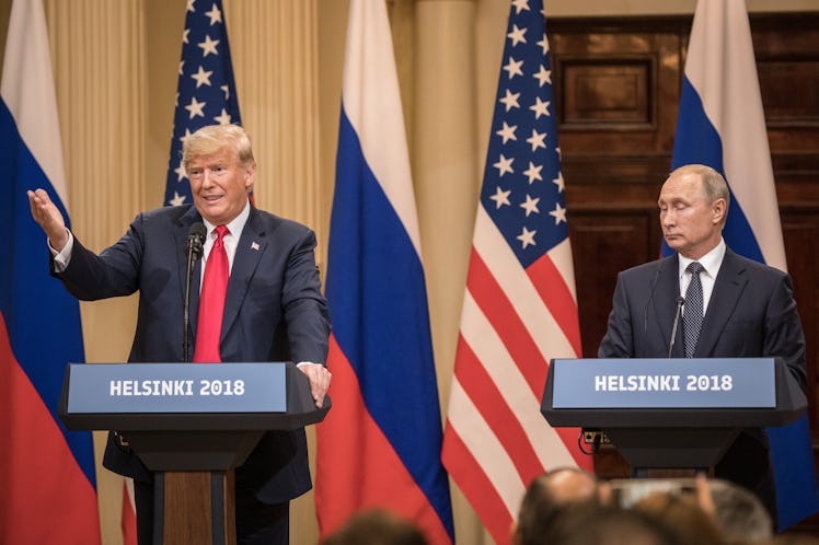 President Donald Trump and President Vladimir Putin spoke during a press conference following their Helsinki summit on Monday, July 16. Due to the strained relationship between the United States and Russia, the questions focused on many hot-button issues. One of the reporters asked if Russia had dirt on Trump, and the video of Putin's response about "compromising materials" on Trump is unsettling.