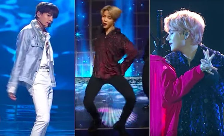 BTS has never shied away from spotlighting its members as individuals. Each member has had solo songs on their last two albums, Love Yourself and Wings, and they each perform those songs regularly while touring around the globe. But usually, when it comes to televised performances at festivals and award shows, the boys stick to their group singles, which means any fan who doesn't snag tickets to their concerts are fresh out of luck if they want to see the boys' solo performances in HD. But that all changed on Dec. 28 during BTS' KBS Gayo Daechukjae set, when the boys decided to shake things up and perform their solo songs at the televised Korean year-end music festival. And let me tell you, these videos of BTS' KBS Gayo Daechukjae solo performances really put a spotlight on each member's talent as an individual, showcasing how integral each and every member is to the success of BTS.