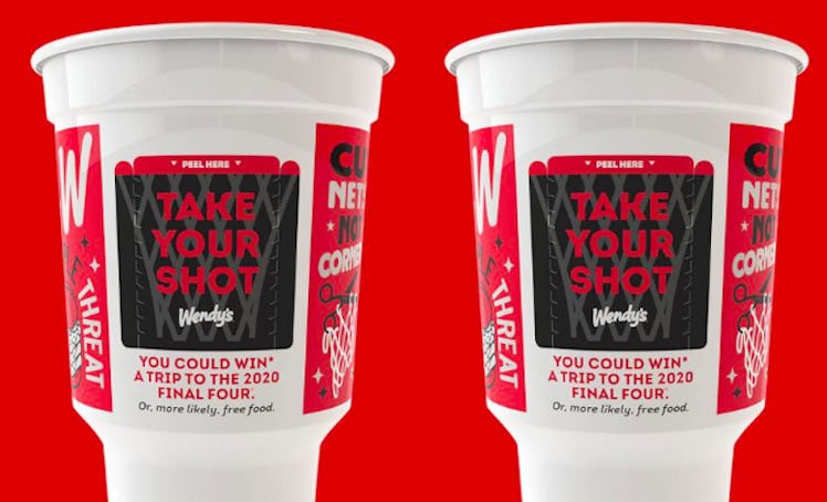 Yep, the game began on March, 11, 2019, and Wendy's customers can enter the sweepstakes by buying any large drink at U.S. locations. Simply peel down the tab on the cup that says "take your shot" for your chance to win. Four lucky people will win a trip to Atlanta, Georgia, for the NCAA Final Four in 2020, tentatively scheduled for April 4 and April 6, 2020. The winning trips will include round-trip coach air transportation for you and a plus-one, four nights at an Atlanta hotel, two tickets to the semi-final games, two tickets to a Final Four game, and $500 for "spending money and local transportation; and travel agent services," per official sweepstakes rules. The approximate retail value of the trip is $7,500 which, considering that the price of entry is less than $5, is pretty incredible.