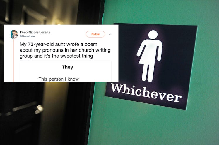 For some reason that is truly beyond me, people seem to have a profoundly difficult time just referring to people the way they'd like to be referred to. The fact of the matter is that some people just don't identify as "he" or "she." Often times, these people preferred to be referred to as "they." Unfortunately, there are others out there who refuse to honor their pronouns. Theo Nicole Lorenz's aunt's poem about they/them pronouns goes to show there's truly no reason not to just be respectful and use the term.