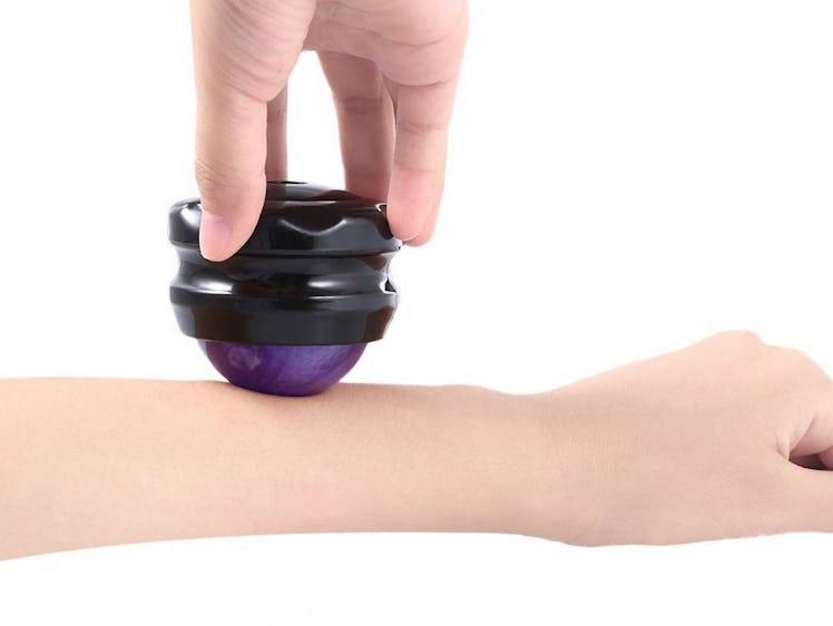 Upgrade your massage game and soothe sore muscles with this simple, yet effective massage ball. The tool fits in the palm of your hand and features 360-degree spinning globe. Glide it along your body with a little gentle pressure to stimulate circulation, relax tension, and loosen up knots. Choose from four colors: blue, green, purple, and pink.